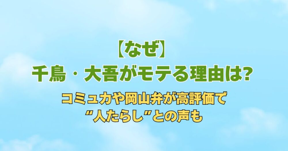 【なぜ】千鳥・大吾がモテる理由は?コミュ力や岡山弁が高評価で“人たらし”との声も