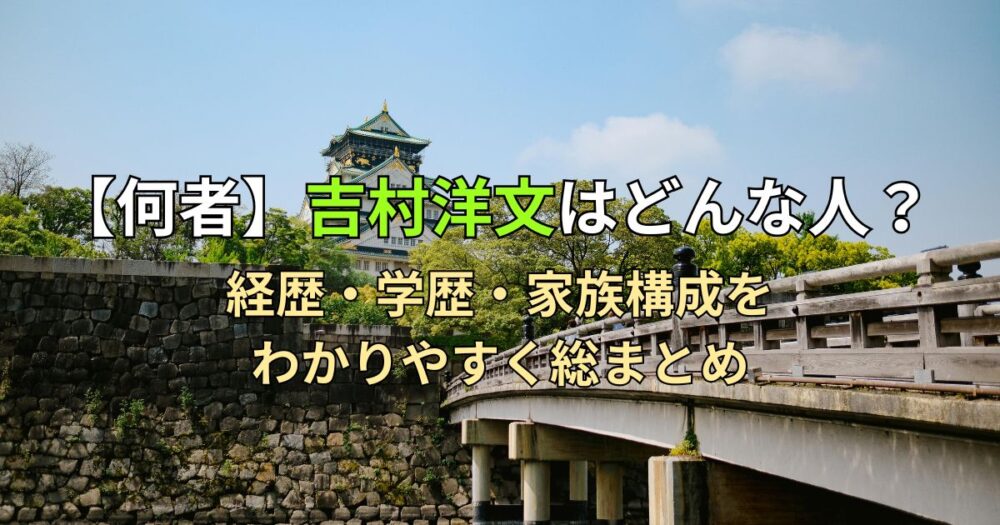 吉村洋文(よしむら・ひろふみ)さんは、弁護士から政治の道へ進み 大阪市長・大阪府知事を歴任してきた実務派の政治家です。 現在は大阪府知事(2期目)でありながら、 日本維新の会の代表としても全国的な政治課題に取り組んでいます。 この記事では、吉...