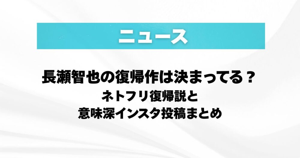 長瀬智也の復帰作は決まってる?ネトフリ復帰説と意味深インスタ投稿まとめ