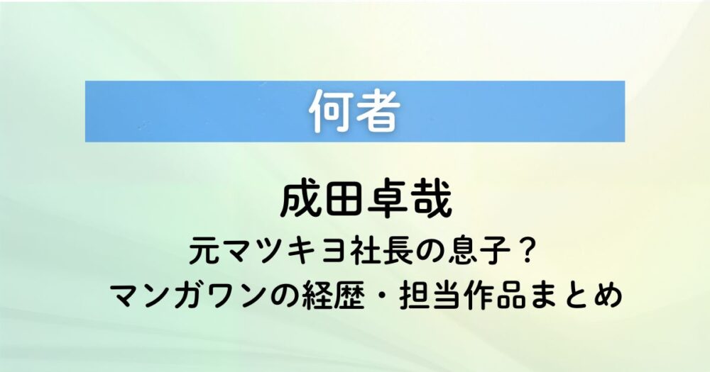 マンガワン関連の動きを見ていると、豆野文俊(まめの ふみとし)さんと千代田修平(ちよだ しゅうへい)さんの移籍が気になった人も多いかもしれません。 先に大きく言うとマンガワンは小学館の漫画サービス、めちゃコミックはアムタスの電子コミックサー... 俳優・女優