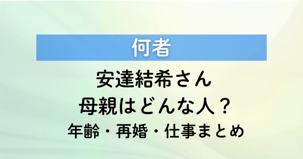 安達結希さんをめぐる報道では、父親や祖母に続いて、母親についても気になっている人が増えています。 表に出ている情報が多くないぶん、年齢や仕事、再婚後の暮らしまで知りたいという声も出ているようです。 ここでは、母親についていま見えていること... 人物