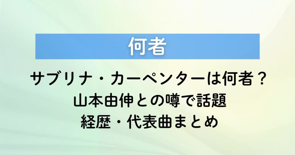 サブリナ・カーペンターさんと山本由伸選手の噂が出ていて、気になっている人もいるのではないでしょうか。 海外アーティストということもあり、「そもそも誰なの?」と感じた人もいるかもしれません。 ここでは、サブリナ・カーペンターさんが何者なのか... 人物