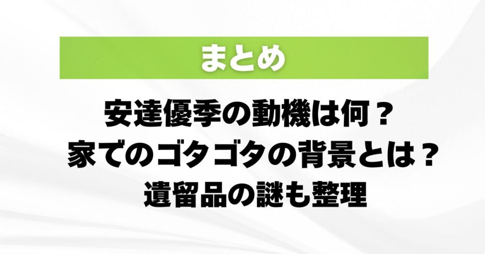 安達優季の動機は何?家でのゴタゴタの背景とは?衝動的・計画的の見方や遺留品の謎を整理