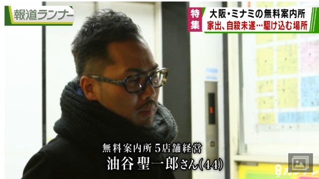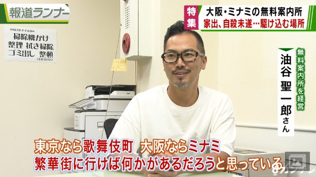 出典:関西テレビ「報道ランナー」特集より(無料案内所の経営に関する紹介場面)