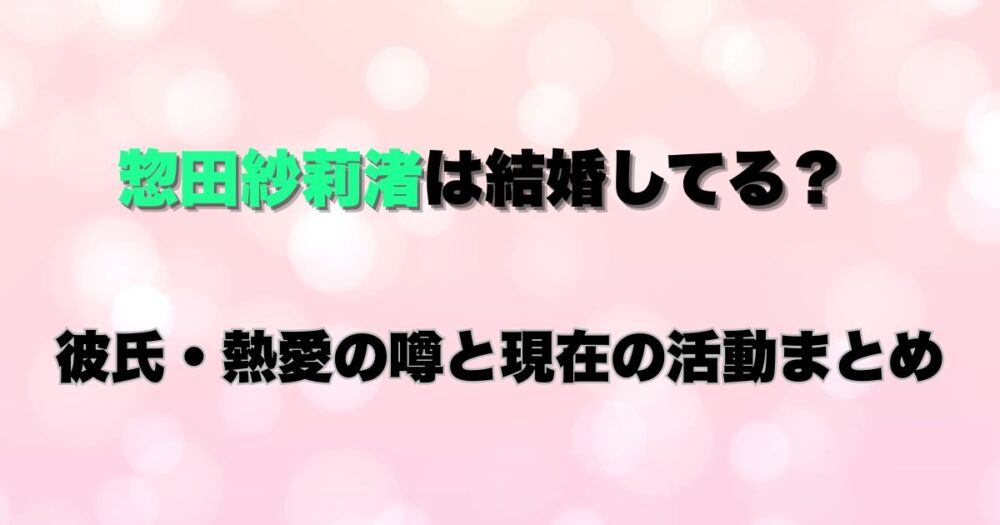 惣田紗莉渚は結婚してる?彼氏・熱愛の噂と現在の活動まとめ