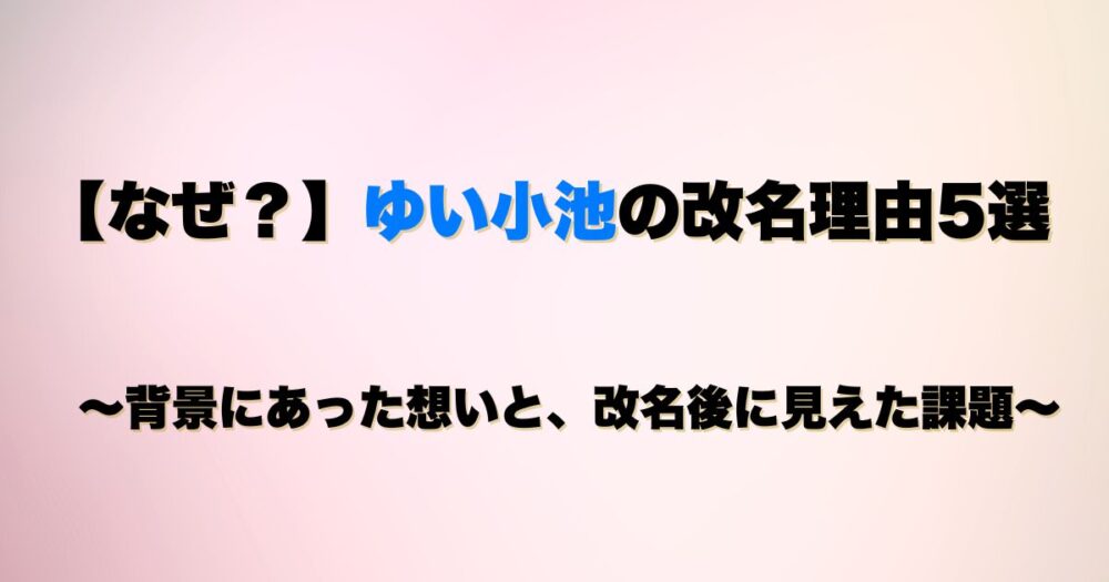 2025年夏、“ゆいちゃみ”として活動していた彼女が、 突然「ゆい小池」へと改名したというニュースが話題になりました。 「どうして名前を変えたの?」「あの“おい、小池!”と関係あるの?」── SNSではそんな声も多く見られましたね。 私はこの話題を見たと... -