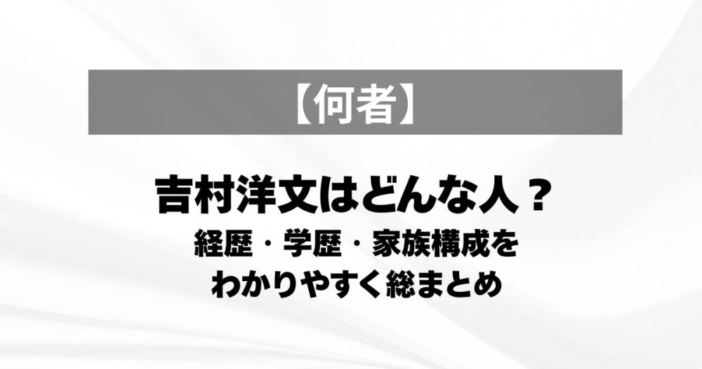 吉村洋文(よしむら・ひろふみ)さんは、弁護士から政治の道へ進み 大阪市長・大阪府知事を歴任してきた実務派の政治家です。 現在は大阪府知事(2期目)でありながら、 日本維新の会の代表としても全国的な政治課題に取り組んでいます。 この記事では、吉... -