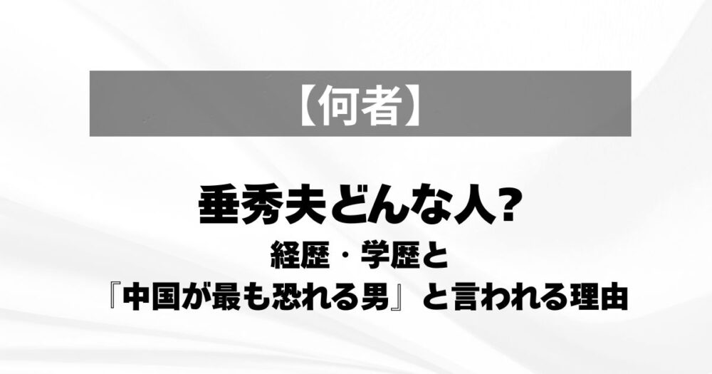 ニュースやネットを見ていると 「中国が最も恐れる男」と紹介されている元外交官 中国や台湾情勢について落ち着いた口調で解説する男性 として「垂秀夫(たるみ ひでお)」という名前を目にすることが増えてきました。 「なんだかすごそうな人だけど具体的... -