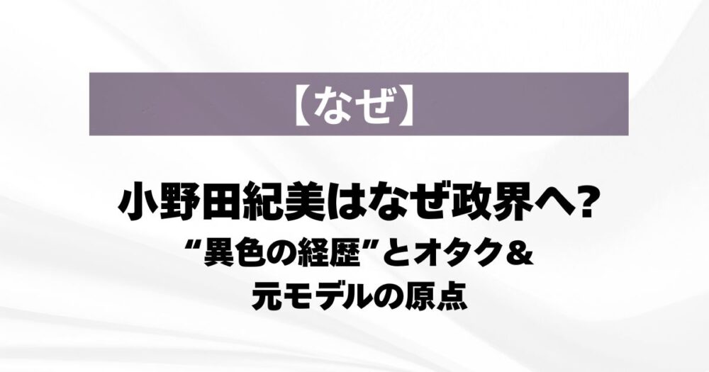 アニメ好きでモデル経験もある。 そんな少し変わった経歴を持つ政治家、小野田紀美(おのだ・きみ)さん。 「なぜ政界に進んだのか?」という問いには彼女の原点と信念が詰まっています。 この記事では、小野田さんの言葉をもとに政治の道を選んだ理由と“... -