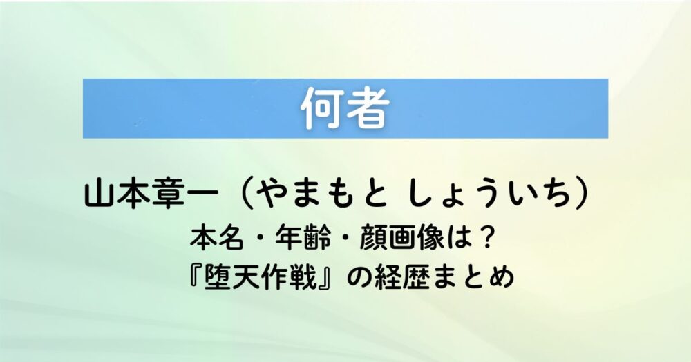 山本章一は何者?本名・年齢・顔画像は?『堕天作戦』の経歴まとめ