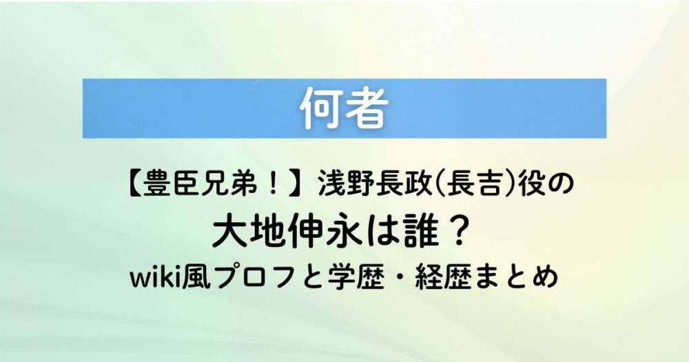 大河『豊臣兄弟!』で浅野長吉(のちの浅野長政)役として出演する大地伸永(だいち のぶなが)さん。