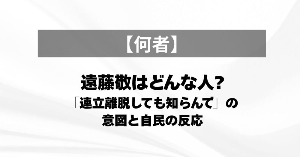 政権との具体的な交渉を担う「裏のキーマン」としての遠藤敬という存在が改めて浮き彫りになったと言えます。