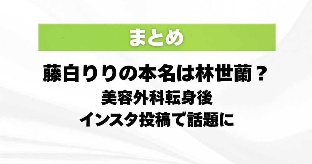 藤白りりの本名は林世蘭?美容外科転身後のインスタ投稿で話題に