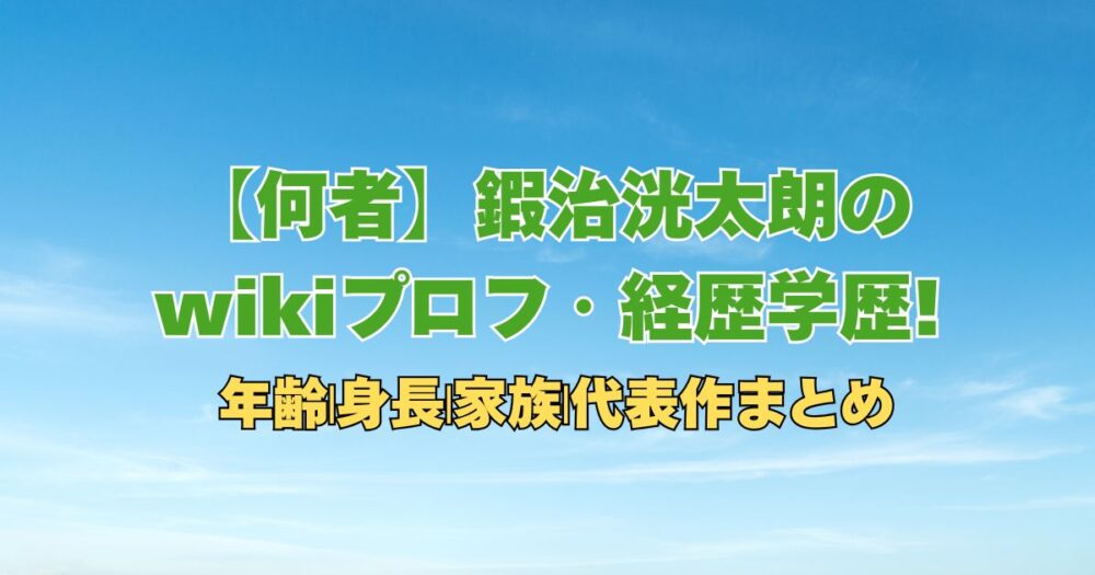 【何者】鍜治洸太朗のwikiプロフ・経歴学歴!年齢❘身長❘生い立ち❘家族❘代表作まとめ