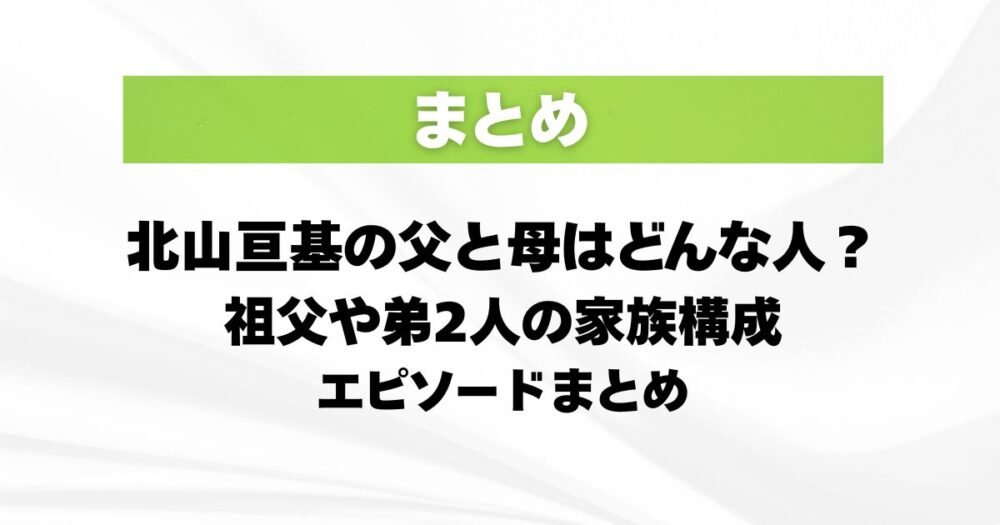 家族の細かなプロフィールは多くないものの、北山亘基さんが家族の思いを背負って歩んできたことはよく伝わってきます。