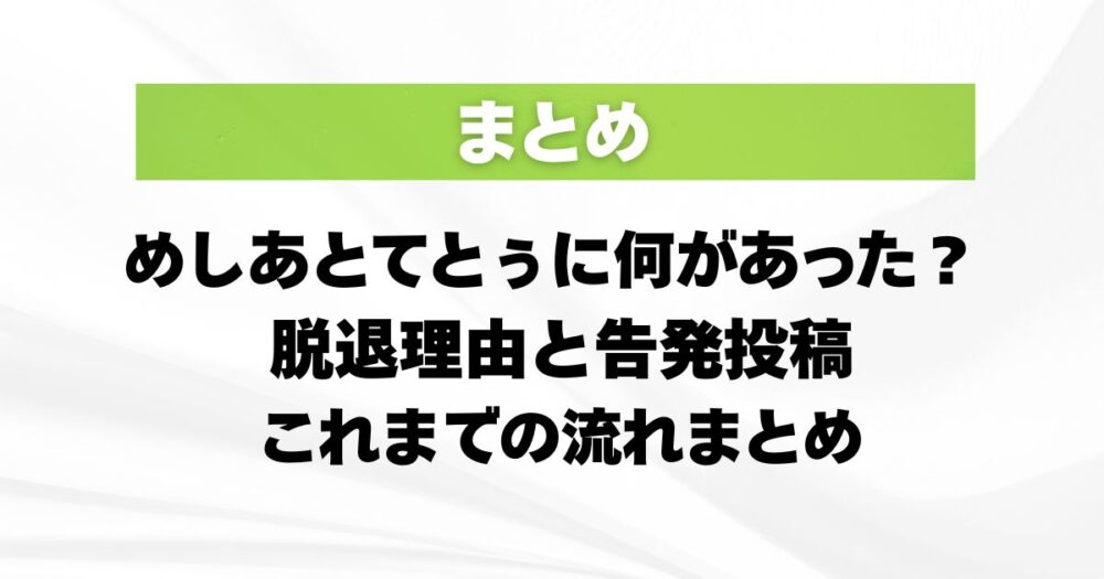最近この件を知った人ほど、脱退発表、反論動画、告発投稿の順で追うと流れがつかみやすいかもしれません。