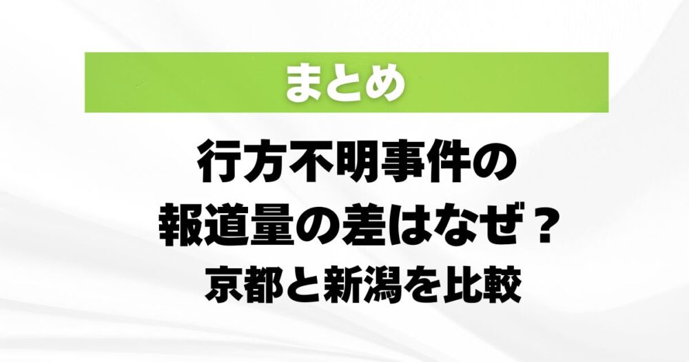 - 行方不明事件の報道量は、警察がどれだけ重大事案と見ていたかで変わりやすい