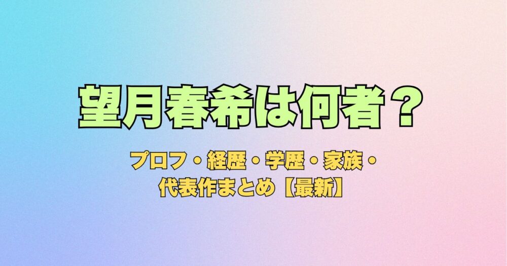 この記事では望月春希さんのプロフィール・経歴・学歴・家族構成・代表作、そして印象的なエピソードまでをわかりやすく紹介します。