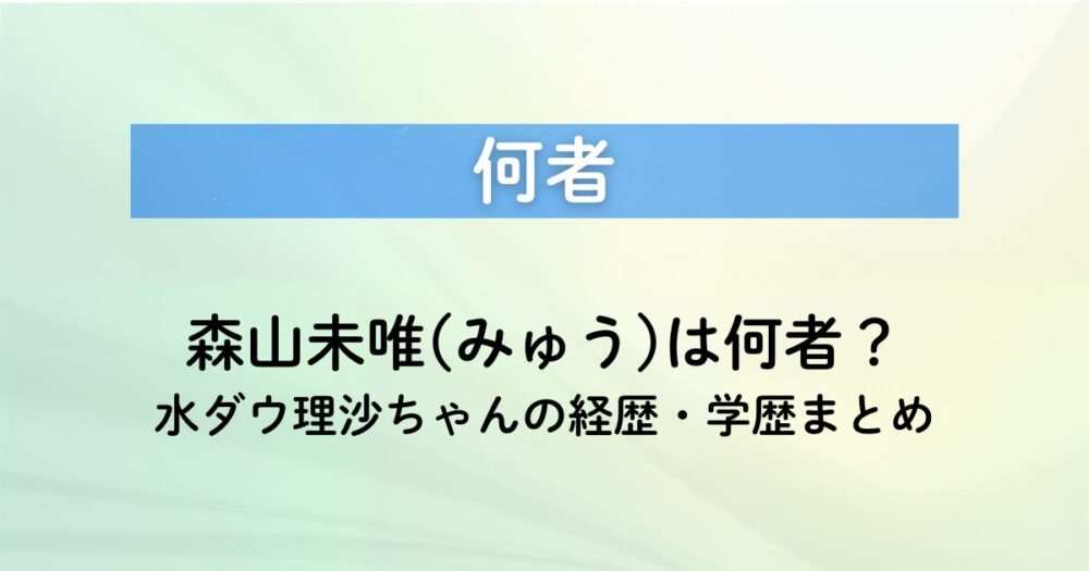 - 森山未唯(みゅう)は、事務所所属で活動する女優・タレント
