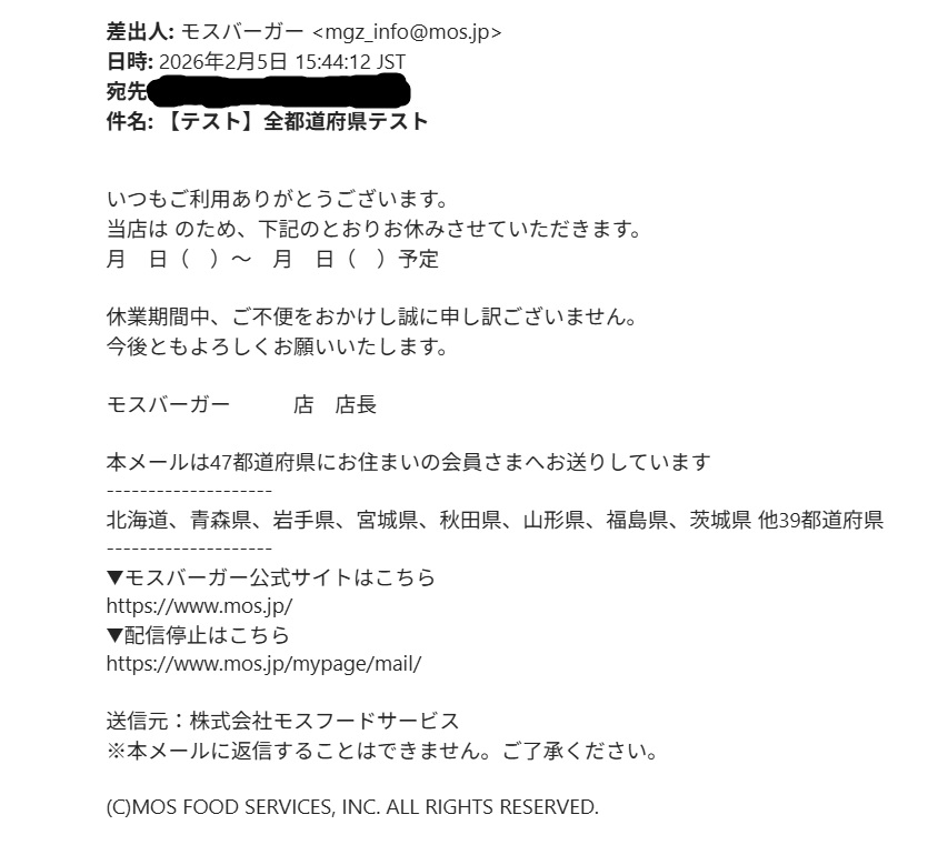 結論:モスバーガーのテストメールは現時点で誤送信の可能性が高い