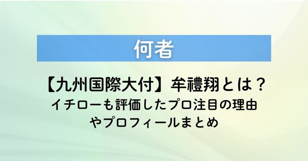 【九州国際大付】牟禮翔はどんな選手?イチローも評価したプロ注目の理由やプロフィールまとめ