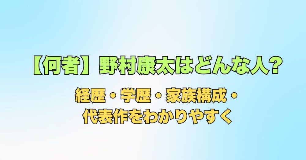 この記事では、そんな野村康太さんの経歴・学歴・家族構成・代表作をわかりやすく整理し紹介していきます。