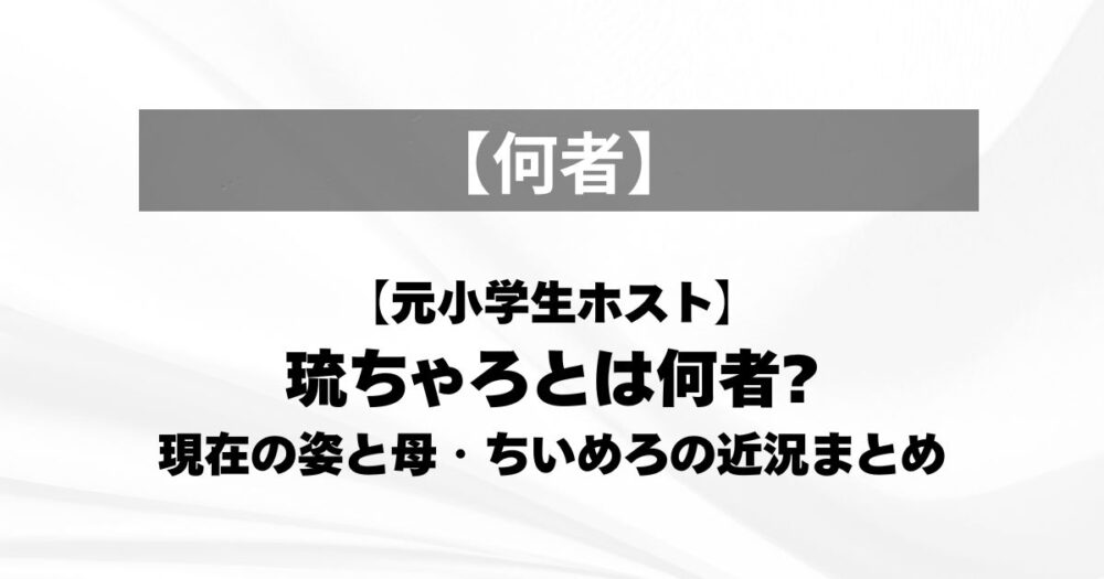 まずは、多くの人が一番気になっている「いま琉ちゃろさんがどうしているのか」という現在の様子から見ていきます。