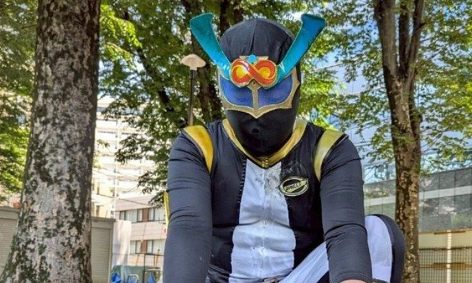 スミレンジャーZさんは、ヒーローの格好で街のゴミを拾う人です。