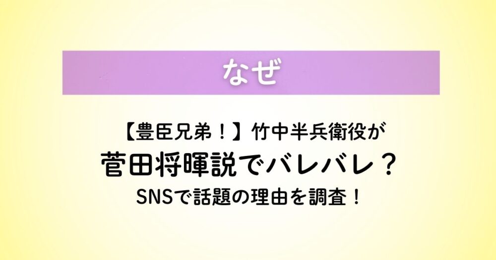 - 『豊臣兄弟!』竹中半兵衛役は 菅田将暉さんで確定
