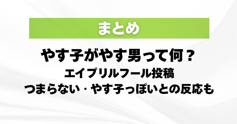 今回の「やす男」は、やす子さん本人が4月1日にXで投稿したエイプリルフールのネタです。